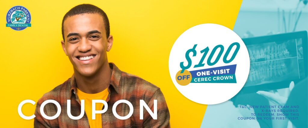 $100 off our “One-Visit Cerec Crown”. New Patient exam and x-rays required.